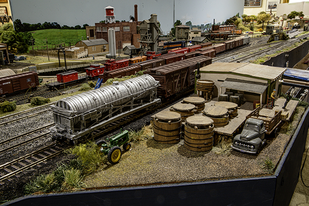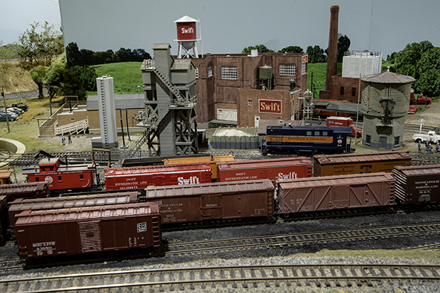 “The Lakeland Route”. The Minneapolis & Northland Railroad Company is a standard gauge short line railroad located in central Minnesota. This freelance railroad is an east-west bridge route connecting the Great Northern Railway on the east end, the Chicago North Western at the mid-point, the Milwaukee Road on the west end and the Chicago Great Western on a branch line that runs to Randolph, Minnesota from Northfield, Minnesota. The layout’s towns reflect a Midwest flavor and consist of many scratchbuilt buildings. Locomotives consist of 1st generation Alco EMD diesels and Fairbanks Morris switch engines decorated with the company’s blue, orange, and white paint scheme. The M&N’s rolling stock is a mix of super detailed, ready-to-run, kit-bashed and some scratchbuilt cars that are all based on prototype photos. The railroad is based loosely on the Minneapolis, Northfield and Southern and is designed for operations.