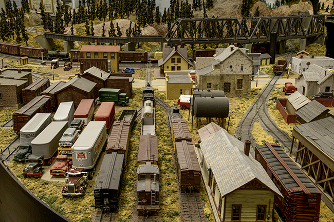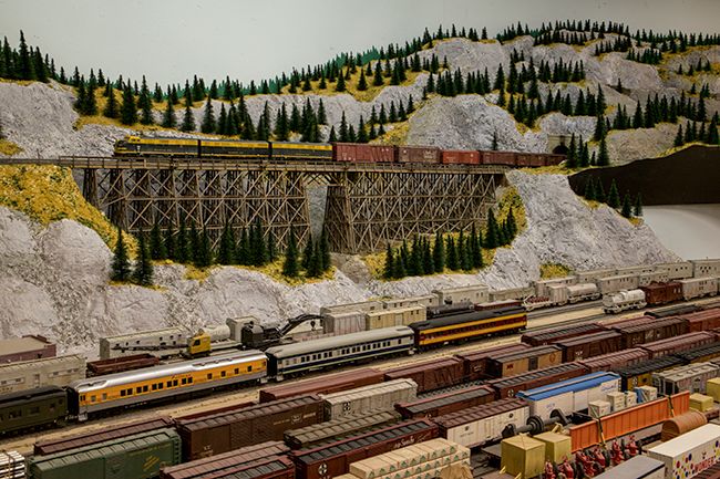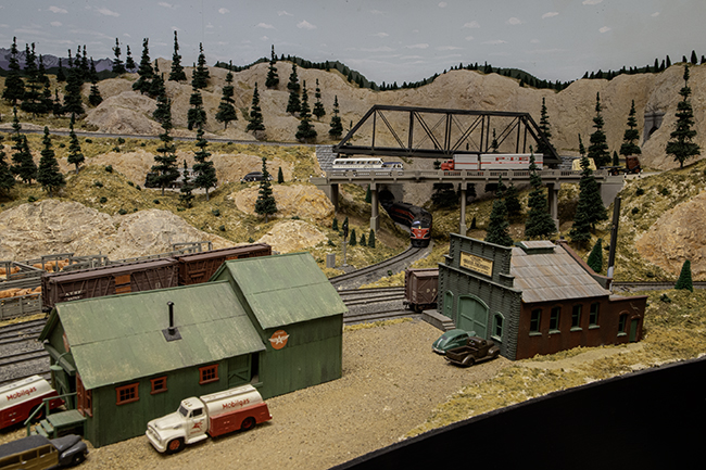 The Minneapolis Santa Fe & Pacific layout is based on the AT&SF and D&RGW and with its many masterfully constructed and highly detailed buildings, bridges and scenes represent railroading in 1953 Colorado. The layout also features hand laid track, custom painted and highly detailed equipment and large mountain scenery that can stretch out a 12 car passenger train with comfort for both train and viewer.